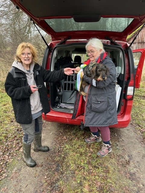 Alle gravhunde skal have godkendt brugsprøve for at kunne modtage cert på udstillingerne! Derfor var vores taknemmelighed stor, da vores opdrættere Marianne & Bruno Rodkjær, tilbød deres gode hjælp med at få taget en såkaldt änlägsklass sporprøve i Sverige. D. 16. juni 2023 bestod Luna sporprøven i Osby, Skåne/Sverige under dommer Christian Gabler, fører Bruno Rodkjær.